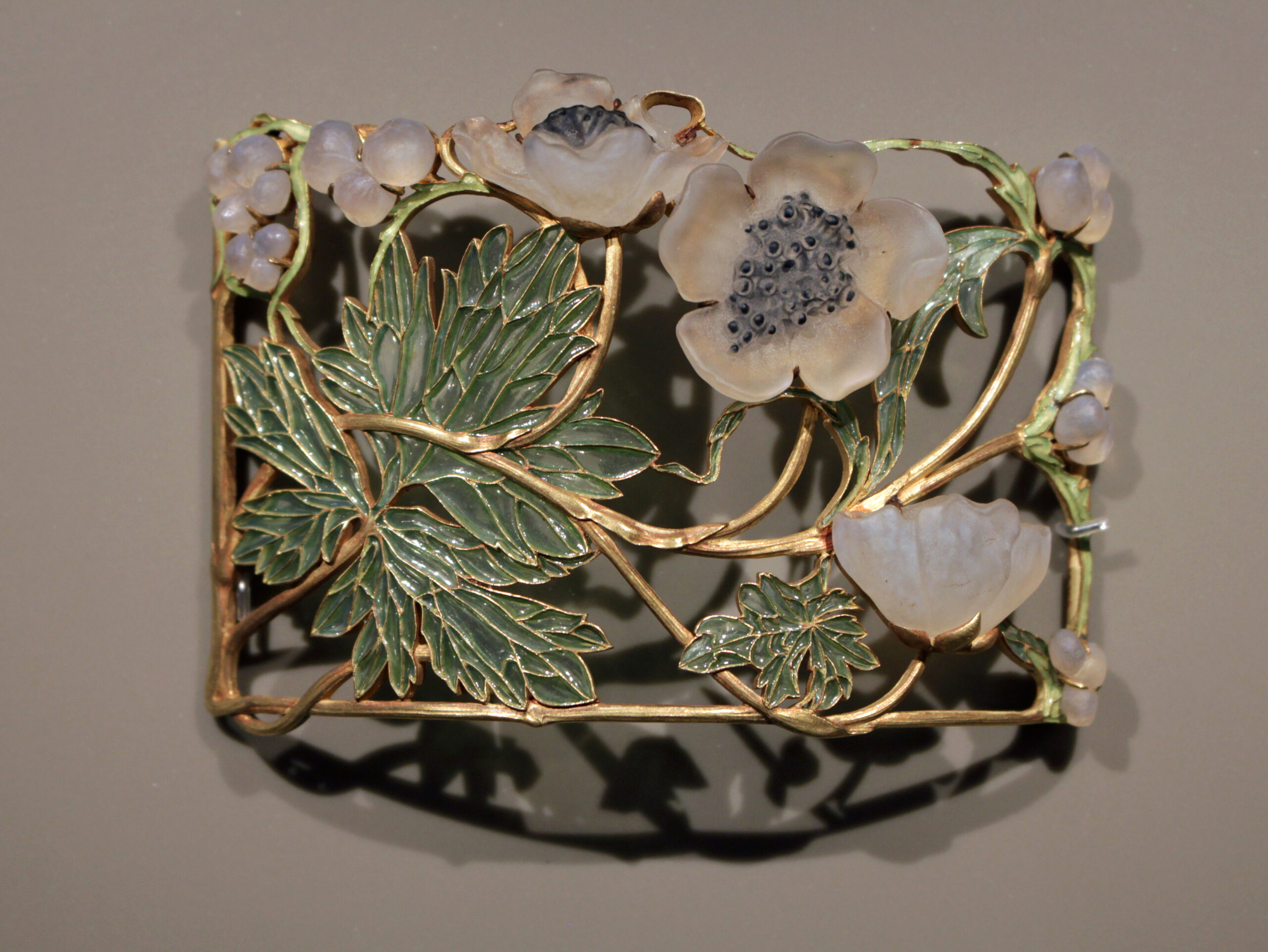 René Lalique, bijoutier et verrier français, transforma les fleurs en joyaux précieux. Ce bracelet en forme d’anémones aux pétales translucides mariaient or, émail et verre pour capturer la délicatesse éphémère. Influençant la mode, ses pièces évoquaient une sensualité presque érotique, où les fleurs symbolisaient la tentation et le mystère.